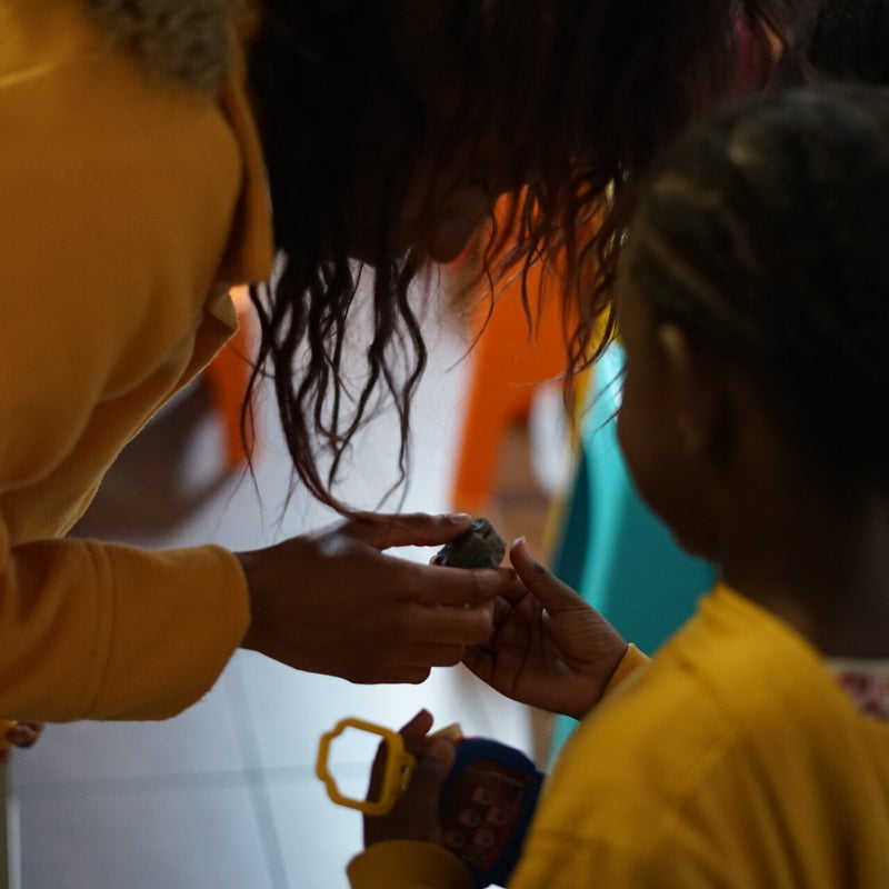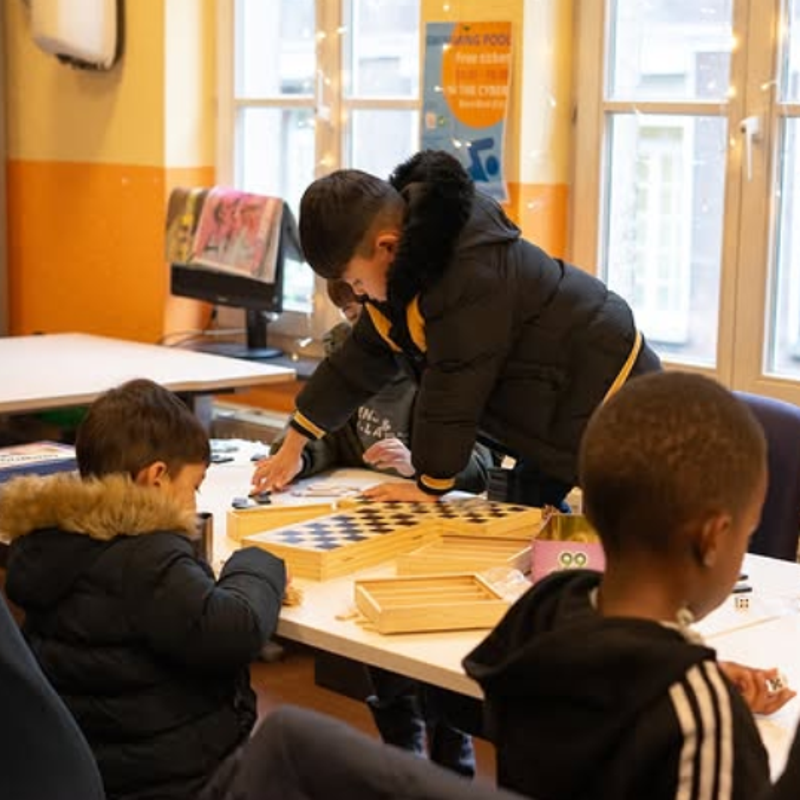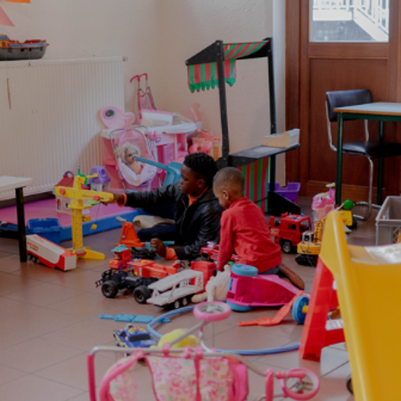 Ik zeg hen waar het speelgoed is en zo en vraag of ze dan misschien wel mee willen spelen. Hier binnen in het park was er een klein meisje en dan heb ik gevraagd om te spelen en dan zei ze ja en dan was het leuk.
