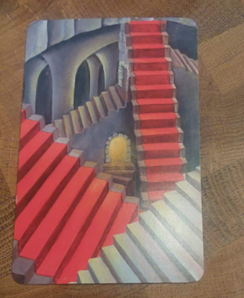 Mijn kamer is op de derde verdieping en ik moet heel veel trappen nemen om daar te geraken. Ze stoppen precies nooit. We blijven naar boven gaan. Voor de rest is er niks.